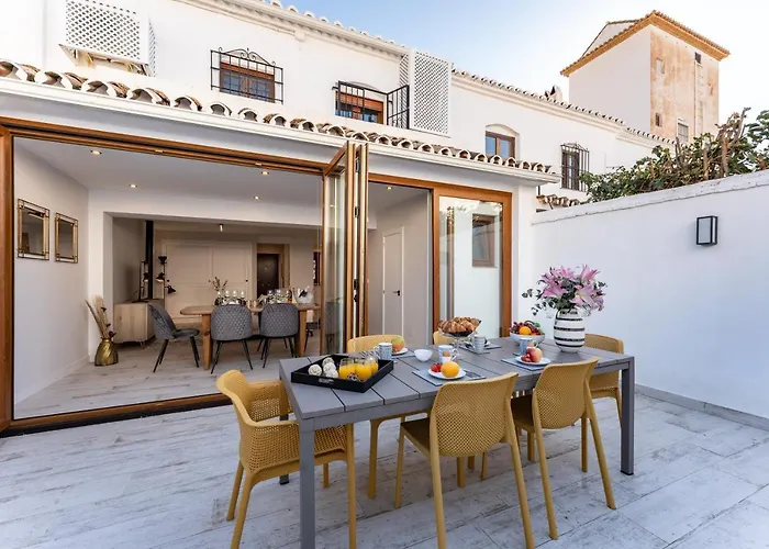 Deze 1-slaapkamer Casa Nordic Villa bevindt zich op slechts 600 meter afstand van Fuengirola avonturengolf en beschikt over een terras met uitzicht op de stad.